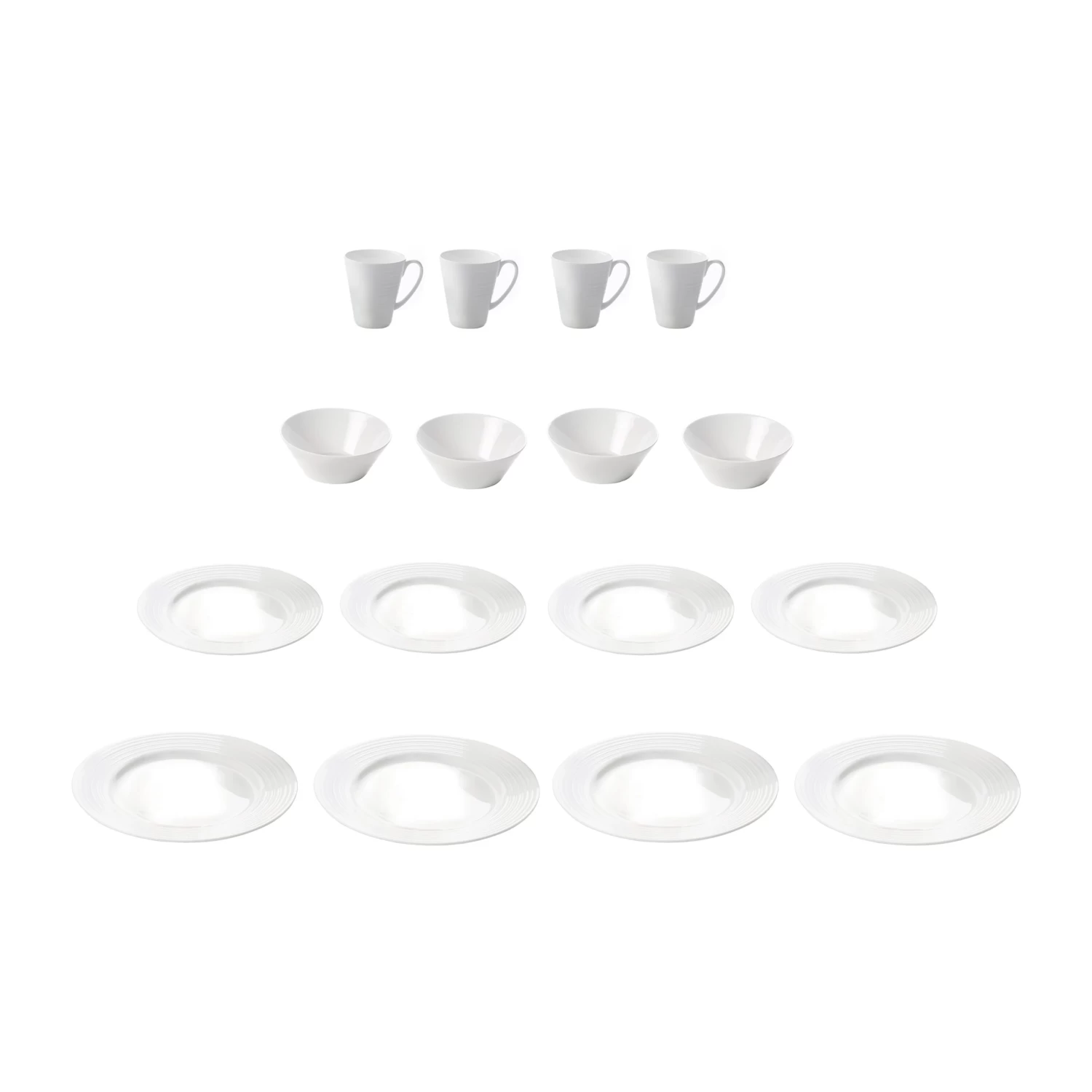 Tassen: Ø 7 cm, Höhe 14 cm, Volumen 33cl. - Im Lieferumfang enthaltene Teile4 Speiseteller