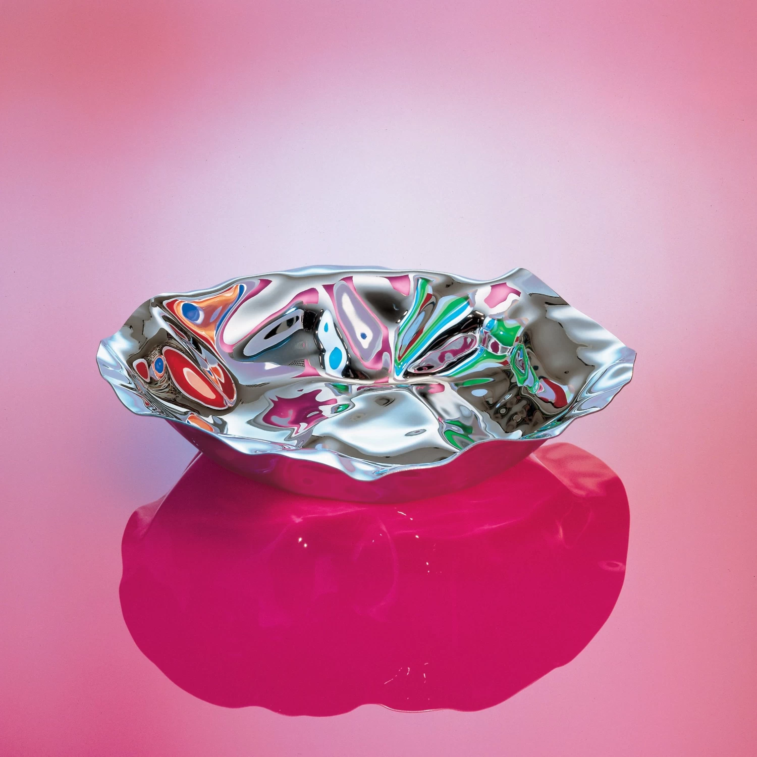 Die exklusive Sarriá Obstschale von Alessi wurde vom spanischen Architekten Lluís Clotet entworfen, der sich von einem eigenwillig gefalteten Silberpapier inspirieren ließ. Die Schale ist aus Edelstahl im Kaltpressverfahren in einem einzigen Vorgang hergestellt.