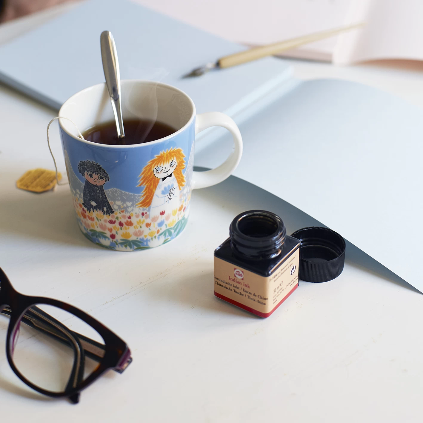 Die Freundschaft Mumintasse von Arabia wurde von Tove Slotte nach den Originalzeichnungen von Tove Jansson entworfen. Das Motiv stammt aus dem klassischen Bilderbuch “ Wer tröstet Toffel?“ .Das Buch handelt von dem einsamen kleinen Toffel, der ein Abenteuer unternimmt, um seine Ängste zu überwinden. Anfangs ist er unglaublich vorsichtig und schüchtern, aber als er das ebenso einsame Mädchen Miffel trifft, dreht sich alles zum Positiven und die beiden werden Freunde.