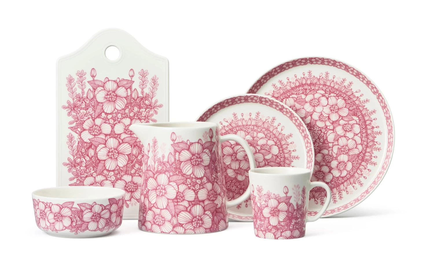 Der Huvila Teller verfügt über eine blumige Borte, die all das hübsch umrahmt, was Sie servieren möchten. Das Muster der Huvila-Kollektion der Marke Arabia wurde von der finnischen Designerin und Keramikerin Heini Riitahuhta erschaffen. Die Inspiration dafür hat sie in ihren Kindheitserinnerungen an das Haus ihrer Oma und der dortigen Atmosphäre gefunden. Die Farbe des Musters mit Wildrosen ist dabei die Lieblingsfarbe der Großmutter. Das Resultat ist ein romantisches Blumenmuster in moderner Interpretation. Möglicherweise wird das sogar zum kommenden Klassiker?