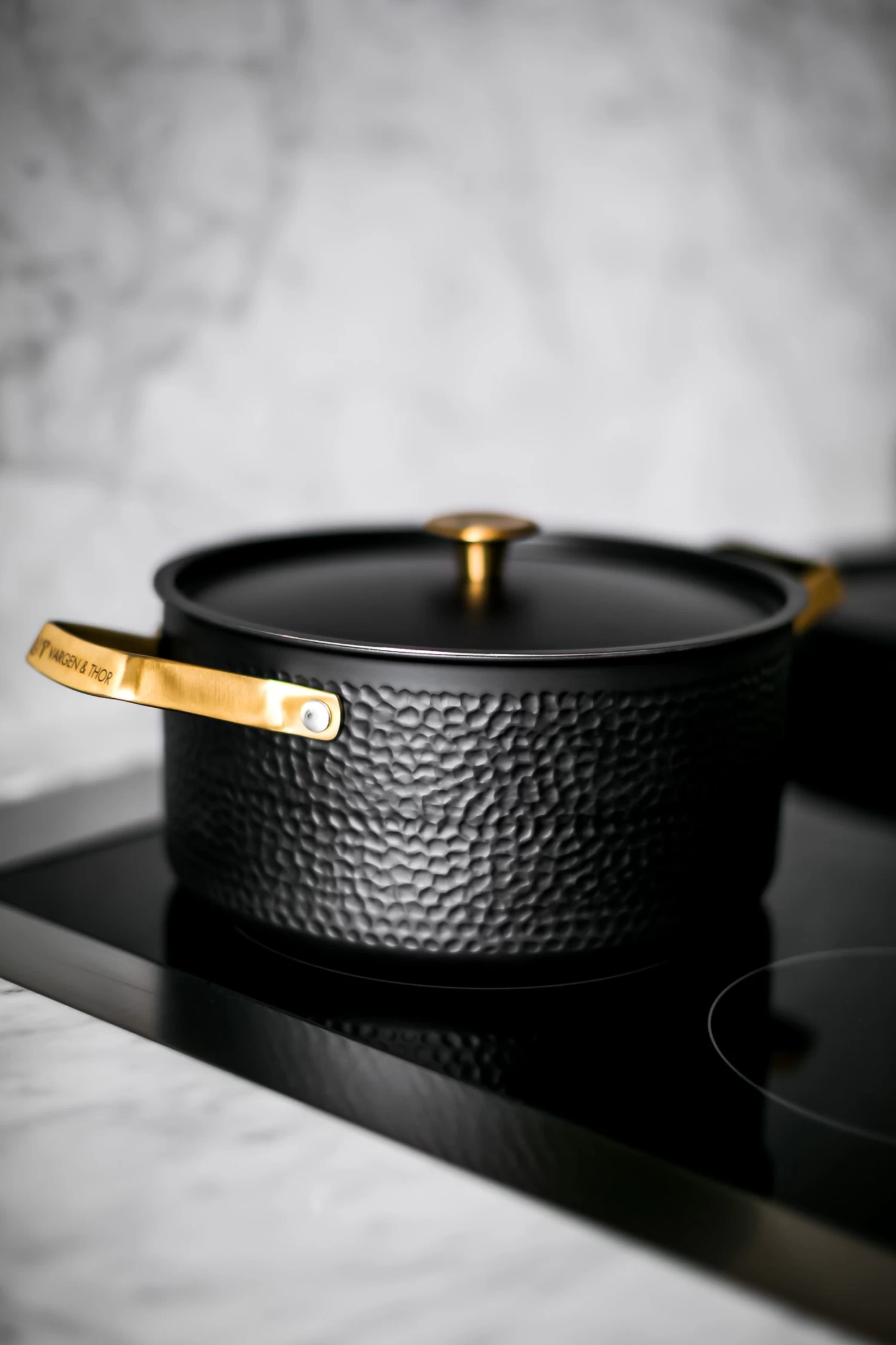 Arvet Gehämmerter Schwarzer Topf Mit Deckel