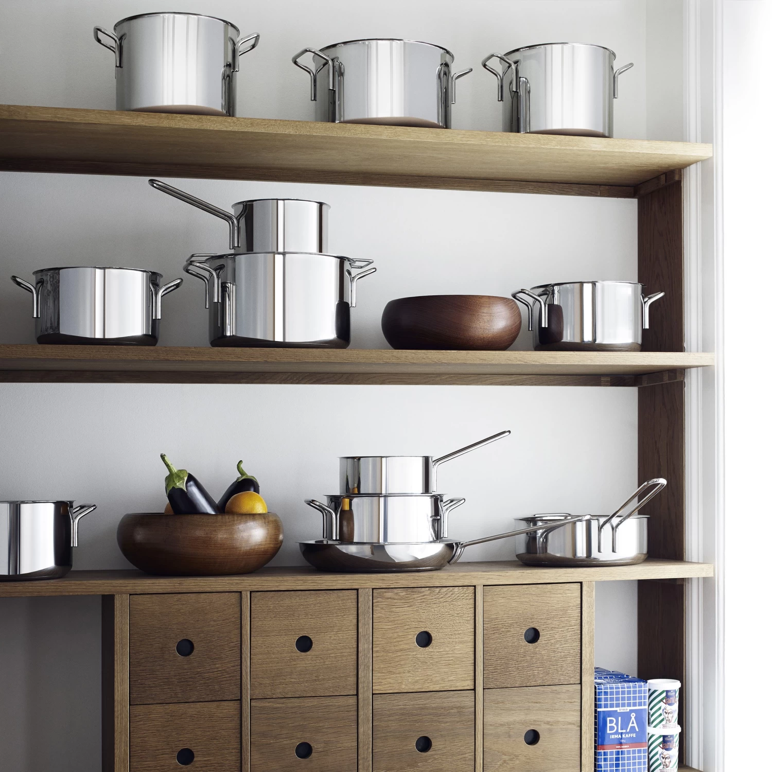 Dieser formschöne Topf aus Eva Solos Kollektion Eva Trio Edelstahl glänzt mit einer noblen Edelstahloptik. Die Sandwichkonstruktion sorgt dafür, dass die Hitze gleichmäßig am Boden und an den Wänden verteilt wird. Design von Ole Palsby.