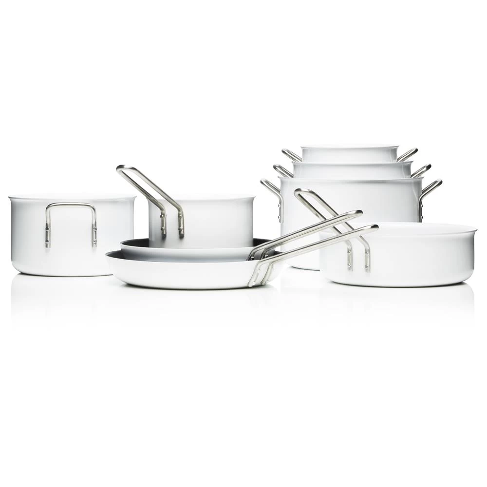 Diese ästhetische, höchst funktionelle Bratpfanne stammt vom dänischen Designlabel Eva Solo. Die innovative Slip-Let Beschichtung auf der Innenseite hindert Fleisch und Gemüse daran, an der Pfanne kleben zu bleiben. In Eva Solos Trio-Kollektion sind neben dieser Bratpfanne auch verschiedene andere Töpfe und Pfannen im selben, weißen Farbton enthalten.