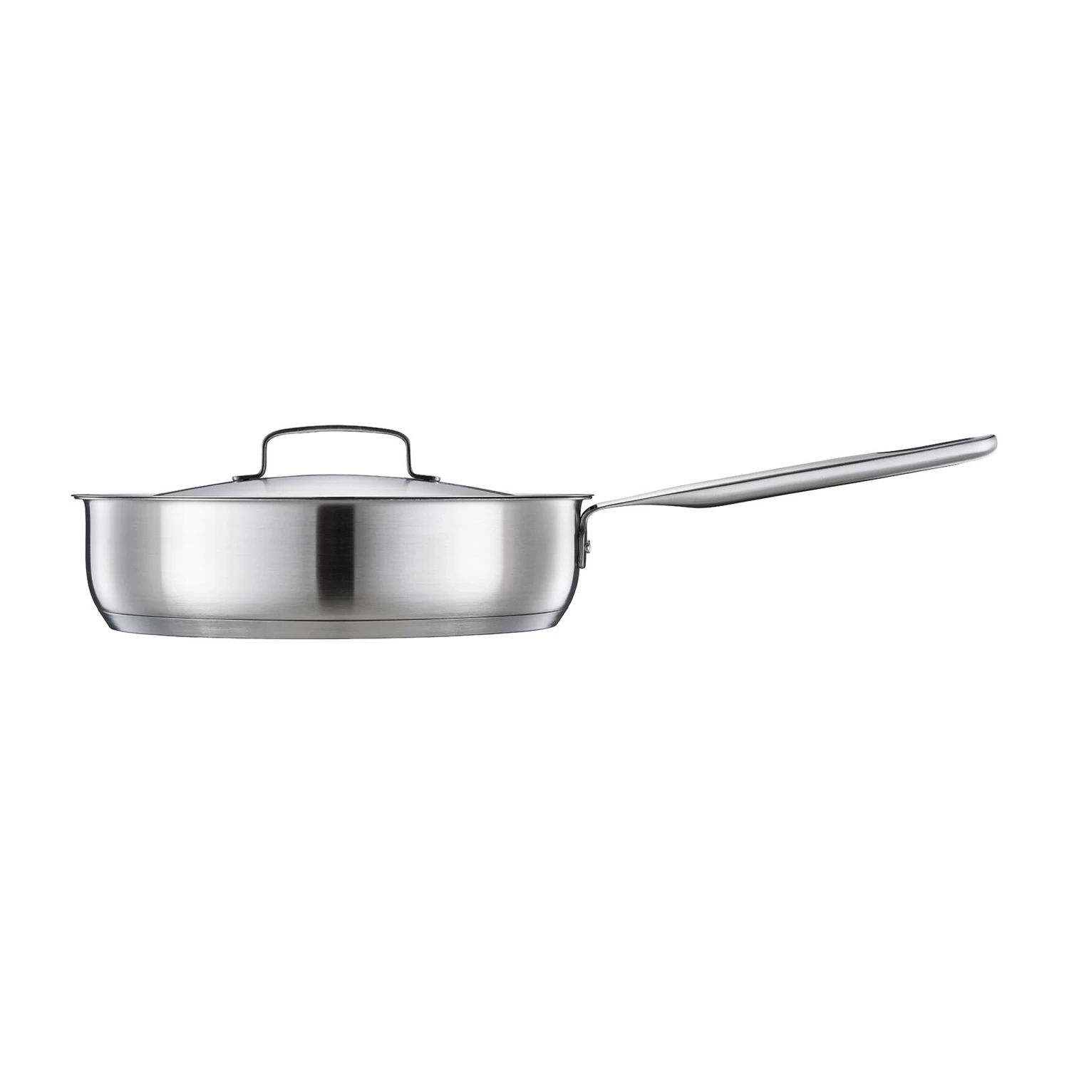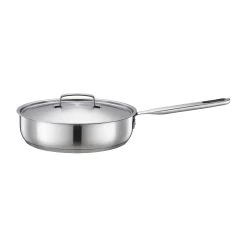 Die All Steel Sauteuse-Pfanne wurde von Pentagon Design für die finnische Marke Fiskars entworfen. Die Sauteuse besteht aus Edelstahl und ist mit einer Ceratec-Keramikbeschichtung versehen, welche Wärme sehr gut verteilt und eine perfekte Bratfläche garantiert. Die Pfanne hat einen zugehörigen Deckel mit Dampfloch und eignet sich hervorragend für die Zubereitung von leckeren Eintöpfen oder Saucen.