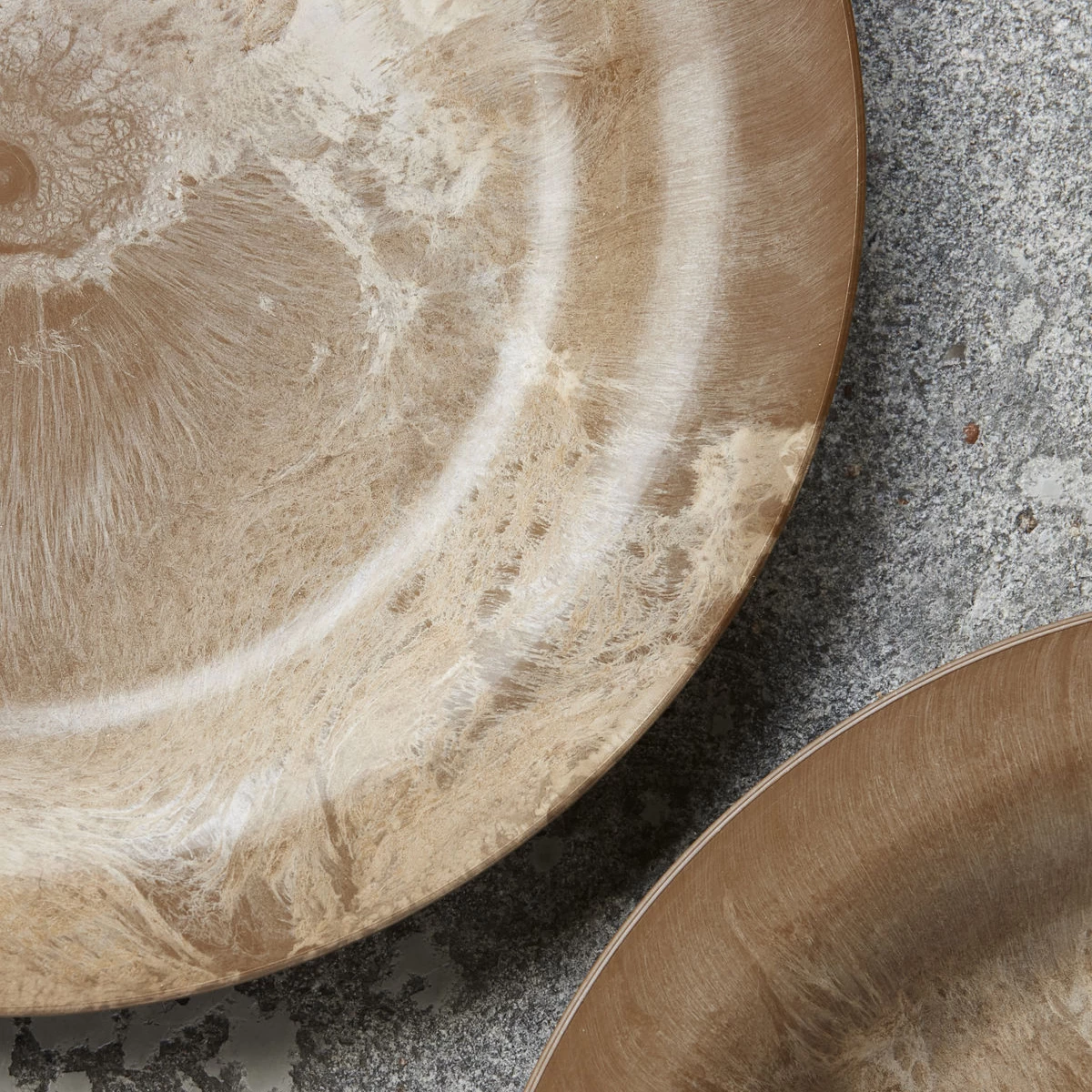Schaffen Sie mit den Serveur Tellern im 4er-Pack von House Doctor eine gemütliche Atmosphäre, wenn Sie Freunde zum Mittagessen einladen! Auch handelt es sich bei den Tellern um die perfekten Begleiter für ein Picknick in der Natur. Sie bestehen aus Kunststoff und sind dementsprechend leicht. Auch als Servierteller sind sie aufgrund Ihres rustikalen Design optimal geeignet.