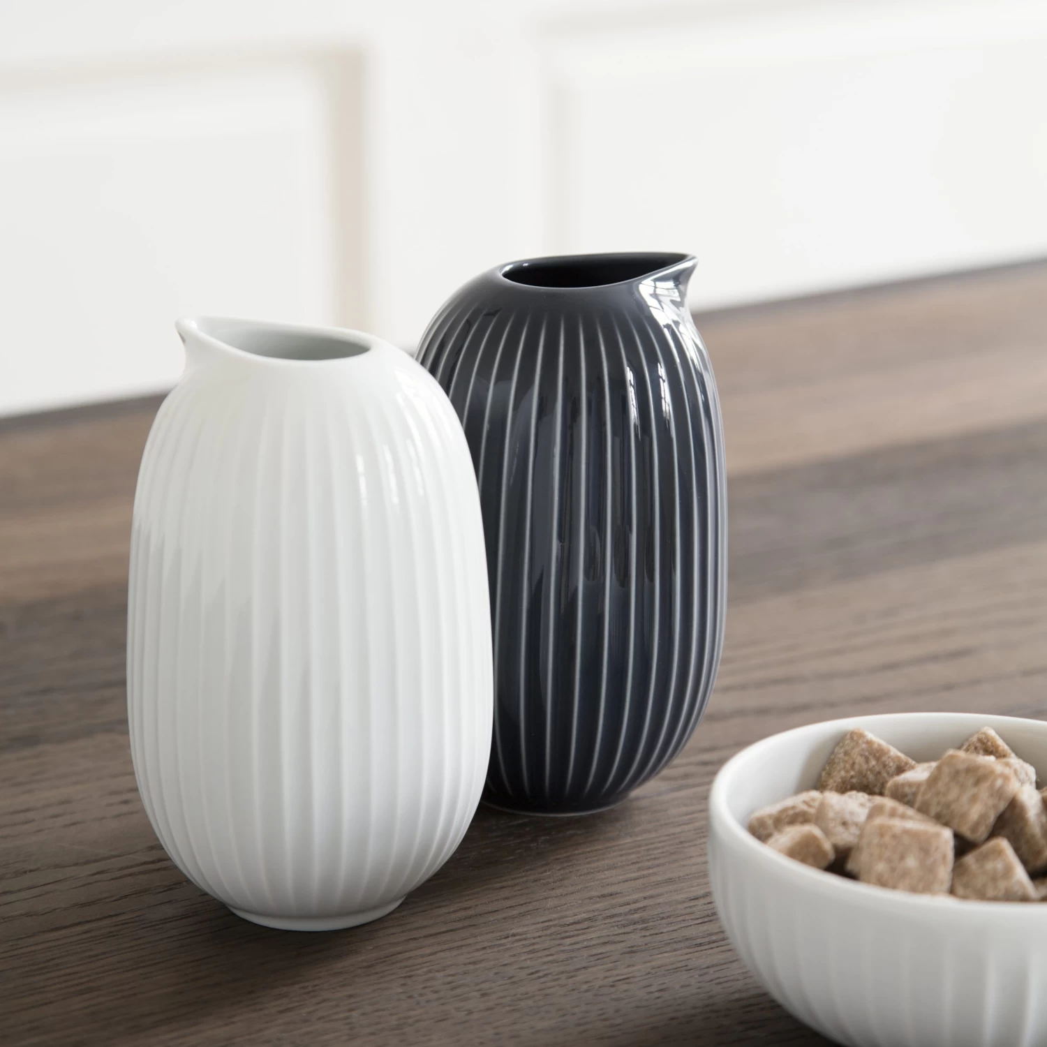 Als zeitloses Stilelement dieses Milchkännchens aus Kählers Hammershøi-Kollektion fallen sofort dezente Rillen auf, welche an jene Rillen erinnern, die der dänische Designer Svend Hammershøi (1873-1948) in seinen Designentwürfen wiederkehrend eingesetzt hat. Die Hammershøi-Kollektion wurde von Hans-Christian Bauer in Zusammenarbeit mit der dänischen Keramikmanufaktur Kähler entworfen und kombiniert Vergangenheit und Gegenwart auf eine ganz elegante Weise. Bauer interpretiert die klassischen Hammershøi-Rillen in einer modernen, zeitgemäßen Formsprache, die Freunde stilreinen, skandinavischen Designs besonders anspricht.