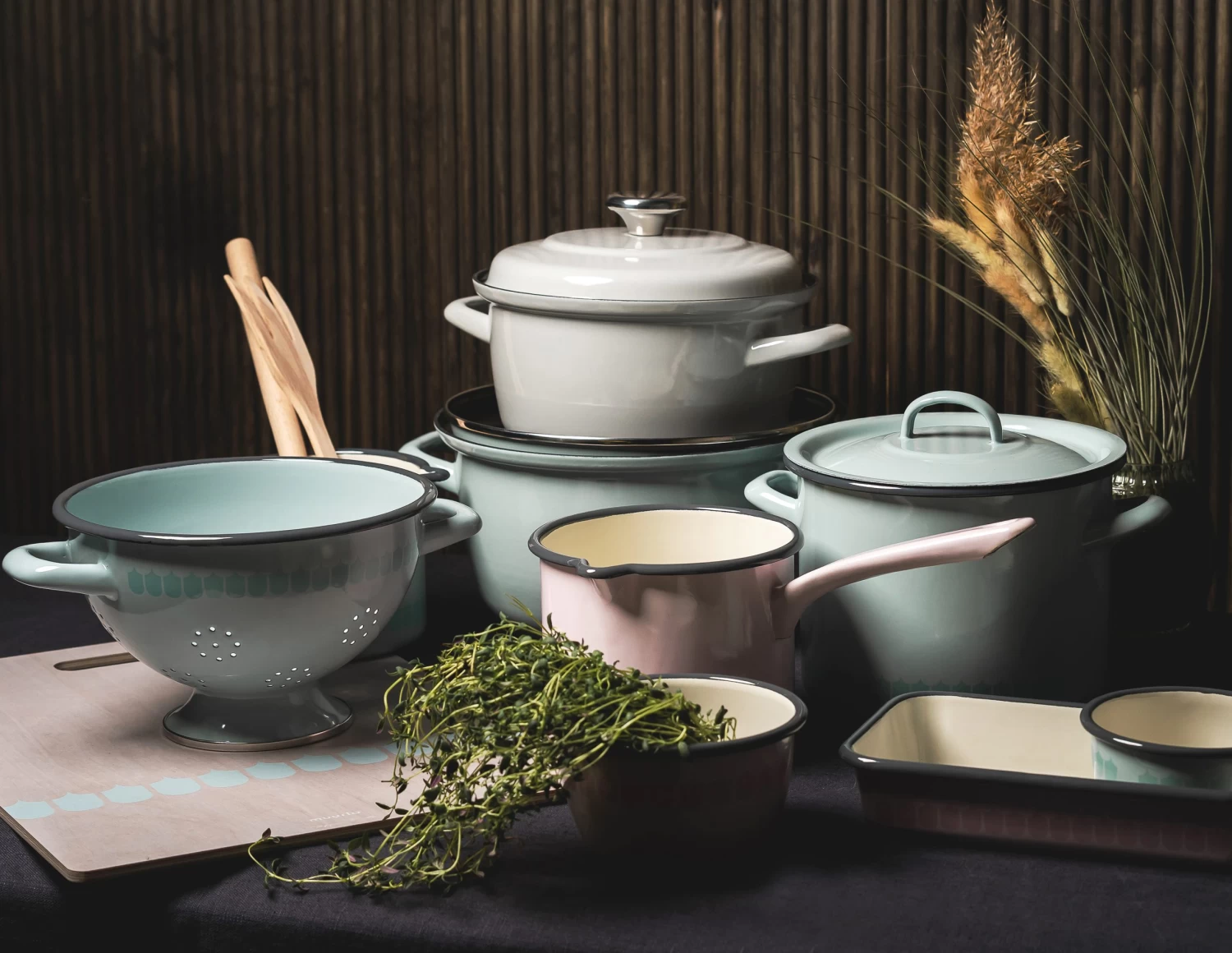 Der Vappu Emaille Topf 5,4 L der finnischen Marke Muurla hat ein zauberhaftes retro-inspiriertes und zeitlosen Design, das von Vappu Pimiä entworfen wurde. Der Topf besteht aus emailliertem Stahl und hat einen dicken Boden, um eine gleichmäßige Wärmeverteilung zu gewährleisten. Durch sein klassisches Design passt der Vappu Emaille Topf zudem wunderbar in alle Küchen, wo er dank seines stilvollen Designs zum echten Blickfang wird.