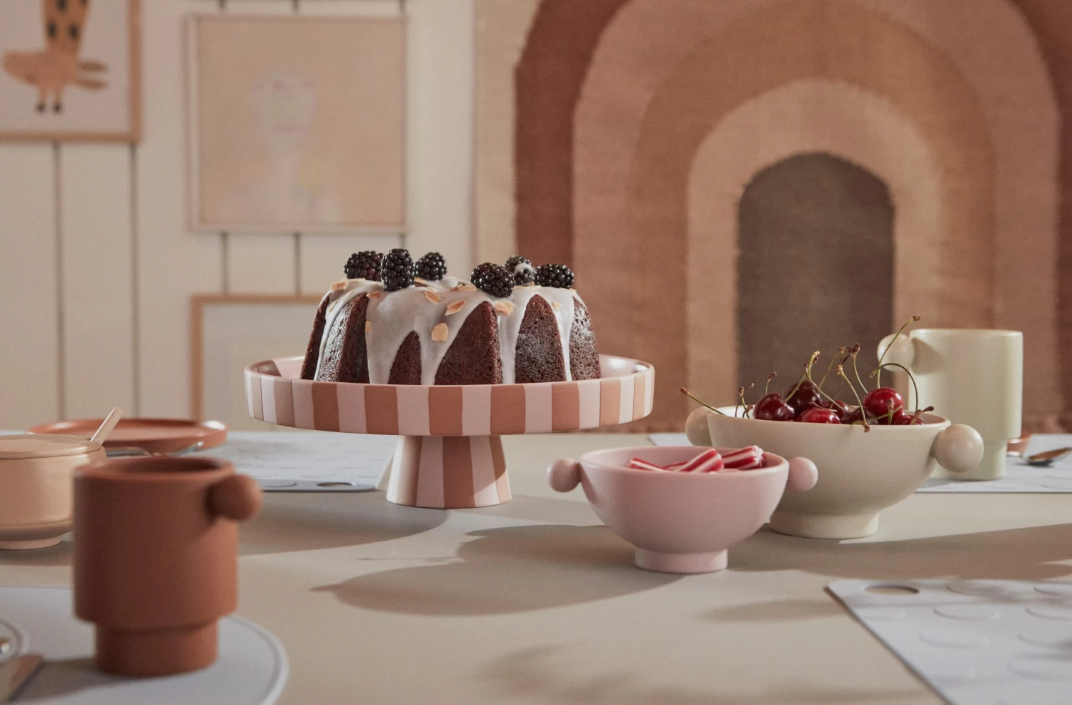 Die Toppu Servierplatte groß Ø 27 cm von OYOY wurde aus strapazierfähigem Steingut gefertigt und erscheint in einem neckischen Design mit einer runden Platte und hohem Rand auf einem stabilen Fuß. Die Schale ist ideal zum Servieren von Kuchen und Snacks, kann aber auch als Alternative zu einer klassischen Obstschale verwendet werden.