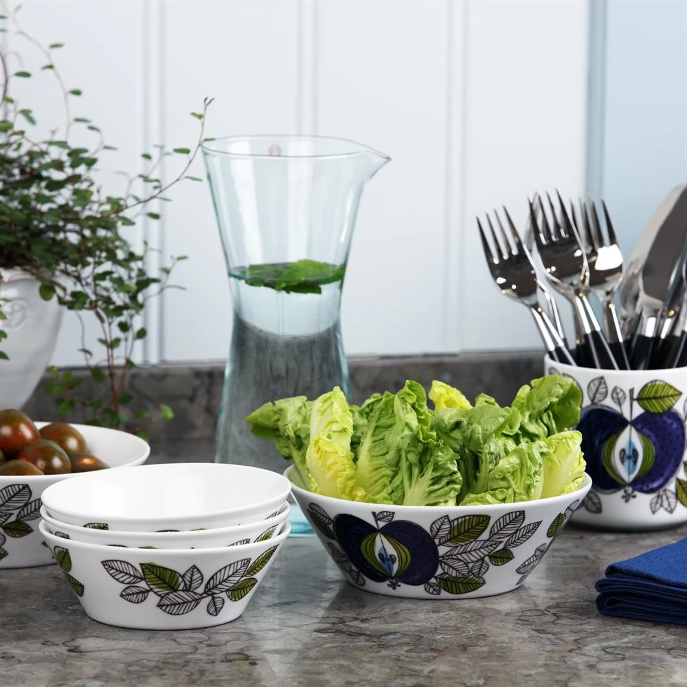 Diese Schale ist Teil der Rörstrand-Porzellanserie Eden, die im Frühling 2016 neu präsentiert wurde. Rörstrand hat anlässlich des 290. Firmenjubiläums seine treuesten Fans gebeten, ein Lieblingsmuster der vergangenen vier Jahrzehnte zu wählen. Das Retro-Muster Eden, das Sigrid Richter ursprünglich in den 1960er entworfen hat, wurde zum Sieger auserwählt. Ein charakteristischer, in der Mitte durchgeschnittener, blauer Apfel ziert diese Schale aus Feldspatporzellan in gewohnt hoher Rörstrand-Qualität.