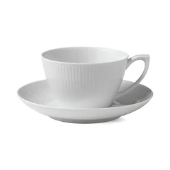 Die Geschirrserie White Fluted von Royal Copenhagen ist der Tradition verbunden. Entworfen von Arnold Krog, ist dieses Service ein ideales Alltagsgeschirr, das vor allem durch seine reine Eleganz und Einfachheit überzeugt. Das Markenzeichen, an dem man das Geschirr von Royal Copenhagen erkennen kann, ist das Logo mit seinen drei Wellen, das auf der Unterseite jedes Geschirrteils zu finden ist. Die drei Wellen deuten auf die drei wichtigen Meerengen hin, die Dänemark umgeben: den Großen Belt, den Kleinen Belt sowie den Öresund. Mit diesem Logo wird die Authentizität, die Handwerkskunst und das ausgefeilte Design symbolisiert, wofür Royal Copenhagen bekannt ist.