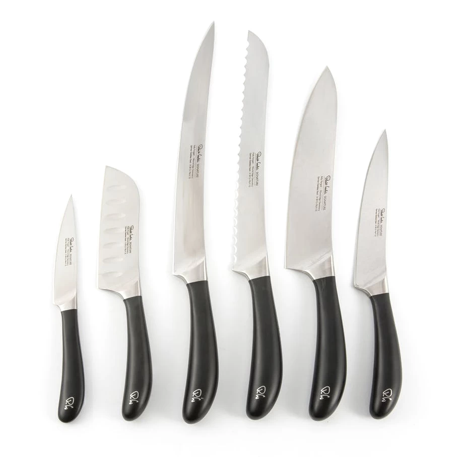 Das Signature Book Oak Messerblockset in 7 Teilen stammt von der britischen Marke Robert Welch und enthält einen Messerblock und sechs Messer. Der platzsparende Messerblock ist aus Eichenholz gefertigt und die Silikonmatte unter dem Messerblock verhindert ein Verrutschen. Das Messerblockset ist nicht nur ein praktischer Küchenhelfer, sondern auch bei Nichtgebrauch ein wunderschönes Design Element für Ihr Zuhause.