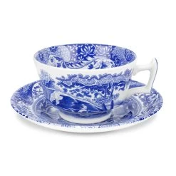 Die Blue Italian Teetasse ist Teil der Blue Italian-Serie der Marke Spode die bereits 1816 in England hergestellt wurde und ein von der italienischen Landschaft inspiriertes Motiv zeigt. Die Serie enthält alle Geschirr Teile, die Sie für das Abendessen oder die Kaffeetafel benötigen, wie Teller, Schalen, Tassen und Serviergeschirr.